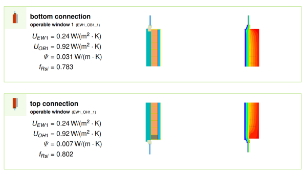 Each window certificate contains at least three installation situations, and in the case of window systems up to ten installation situationss that achieve the climate-specific requirements. In addition to that, custom situations can be requested by the manufacturer. The certificates contain installation drawings with the corresponding thermal brides for the sill, head and jamb sections within three different wall assemblies See example in Component Database