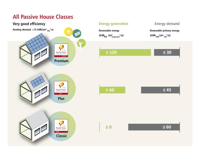 The PER assessment methodology is the basis for the definition of the Passive House Classes. They classify the building in terms of their overall efficiency level and the renewable energy production into three distinct categories: Passive House Classic, Plus and Premium.