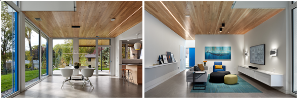 In total, the house offers about 197 m² of living space on two floors and a 60 m² large adjacent climate-controlled garage. Both the front and back yards have generous covered outdoor spaces for enjoyment, entertaining, projects, and to keep snow and debris out of the barrier-free ground-level entrances. The ground floor has been designed keeping growing old in mind.