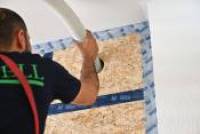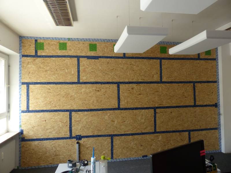 Step 5: In this case sealing between the boards AND along the edges takes place using diffusion open adhesive tape. This is, and remains, extremely important in every interior insulation installation: warm humid indoor air must not enter behind the insulation under any circumstances "There should NEVER be any air flow behind interior insulation" (German only). This also applies for capillary-active insulation materials.