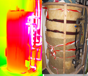 Storage tank: poorly insulated on the left in the thermographic image, subsequently insulated successfully on the right