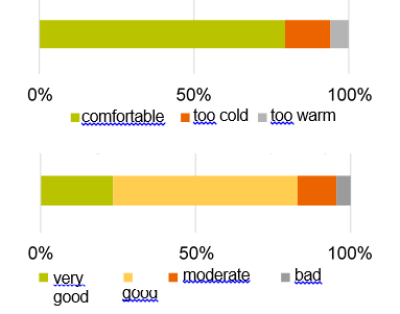 Indoor temperatures in the summer were a negative point for 55 % of the residents (Figure 8). The hot summers of the past few years, when Heidelberg experienced tropical nights and overnight cooling was not possible, were one reason. Greater expectations regarding comfort due to air-conditioned workplaces and vehicles probably also led to this result.