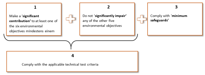 The Commission has drawn up a list of environmentally sustainable activities in which it sets out technical assessment criteria for each of the six environmental objectives. These criteria are defined by delegated acts. Delegated acts on disclosure obligations and climate protection also apply. These specify the content, method and presentation of the information to be disclosed by financial and non-financial companies on the proportion of environmentally sustainable economic activities.