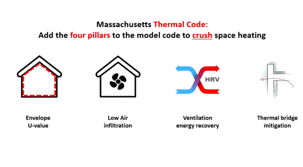 With the 2021 passage of the NGRA the DOER was tasked with updating the Stretch Code and creating a new Specialized Code. In both codes, the DOER set out as a key objective “crushing” heating loads as much as possible to facilitate a grid-friendly fossil fuel to electric heat swap. This strategy also has the additional benefit of improved life cycle cost, resilience, durability, and comfort.